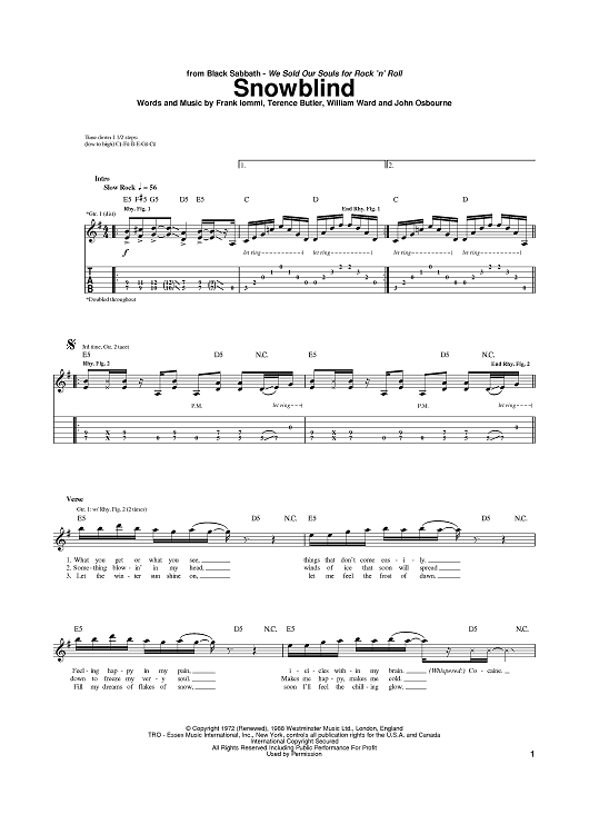 Digital Sheet Music for Snowblind by Bill Ward, Black Sabbath, Geezer Butler, Tony Iommi, Ozzy Osbourne scored for Guitar Tab; id:379535