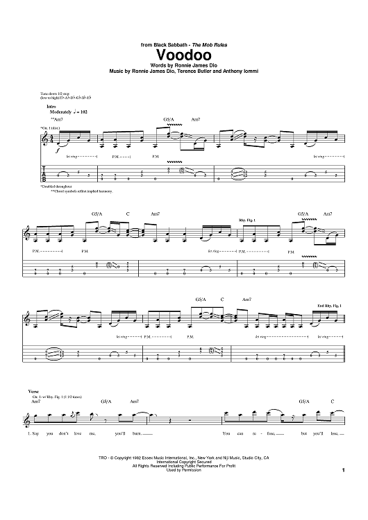 Digital Sheet Music for Voodoo by Black Sabbath, Geezer Butler, Dio, Ronnie James Dio, Tony Iommi scored for Guitar Tab; id:402398