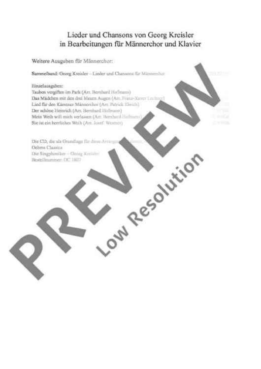 Georg Kreisler equals scathing, dark black humour on the piano! The Singphoniker have arranged Georg Kreisler's best known songs for all-male ensemble and recorded them on CD. Schott now publishes the corresponding music edition for men's choir TTBB with piano accompaniment (Georg Kreisler - Lieder und Chansons, ED 22735). In addition, all songs from the sheet music album are available in separate editions: If you open the phone book of Vienna at V, you will find a lot of unreadable Austrian-Hungarian names. If you string all names together, one after the other, like Kreisler did, you will get a telephone polka. With its catchy melody and incredibly funny text, this piece will be the highlight of entertainment in a concert.