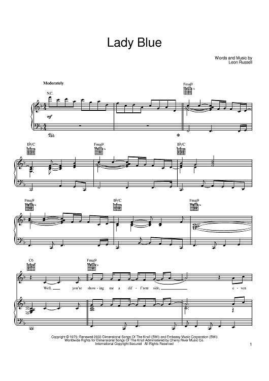Digital Sheet Music for Lady Blue by George Benson, Leon Russell scored for Piano/Vocal/Chords; id:399114