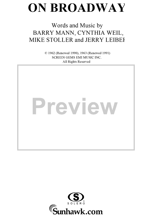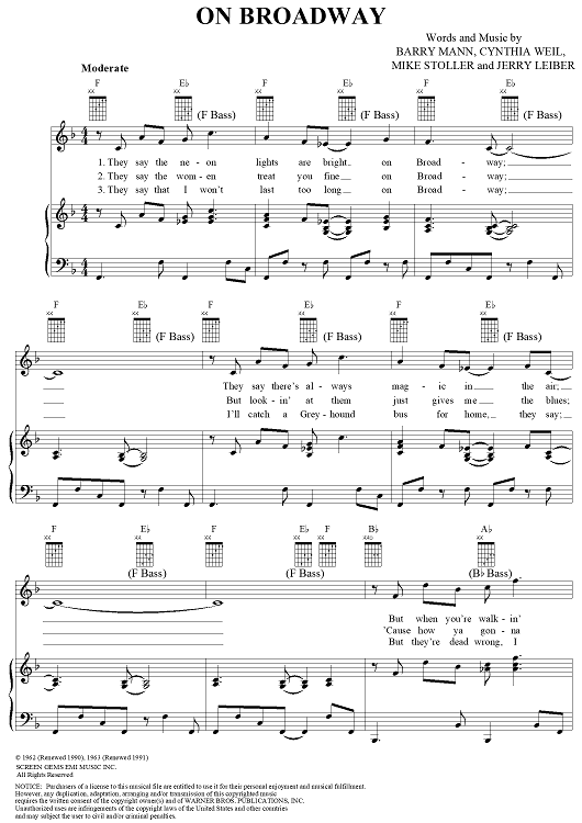 Digital Sheet Music for On Broadway by George Benson, The Drifters, Barry Mann, Jerry Leiber, Mike Stoller, Cynthia Weil scored for Piano/Vocal/Chords; id:116062