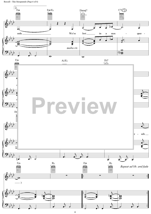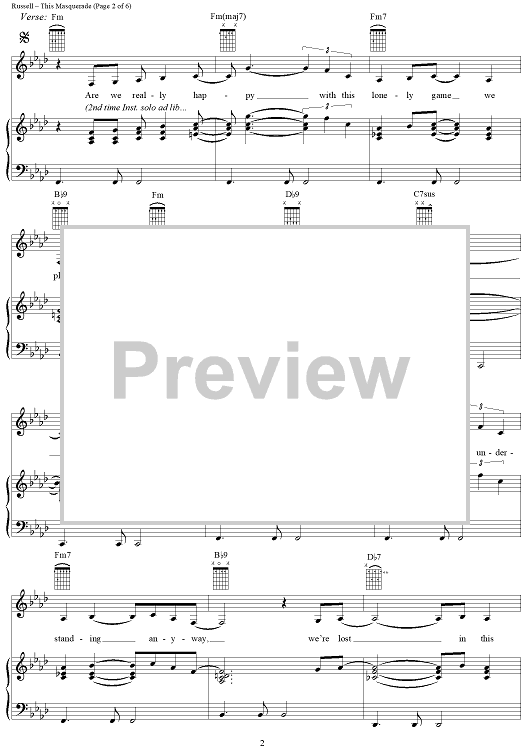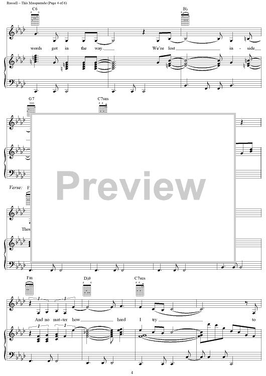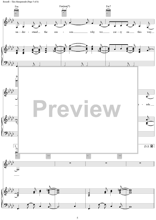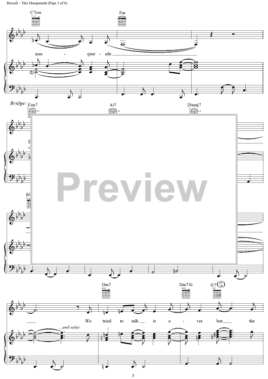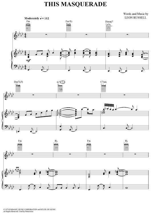 Digital Sheet Music for This Masquerade by George Benson, The Carpenters, Leon Russell scored for Piano/Vocal/Chords; id:120317