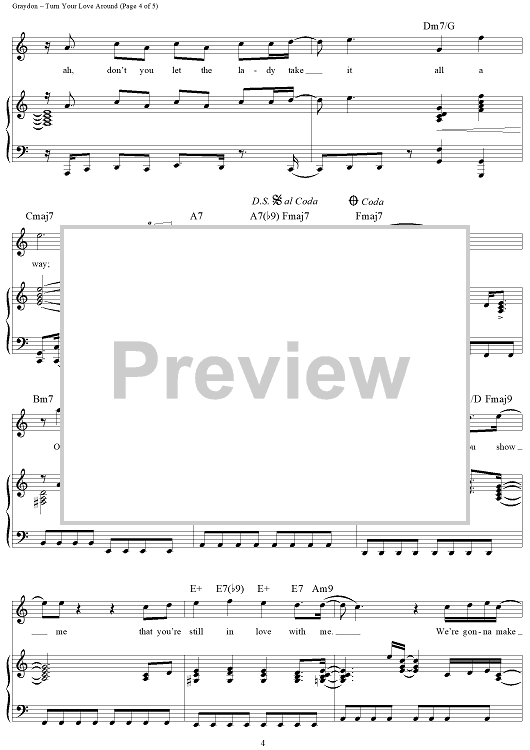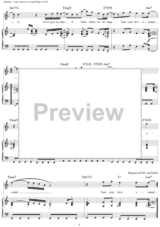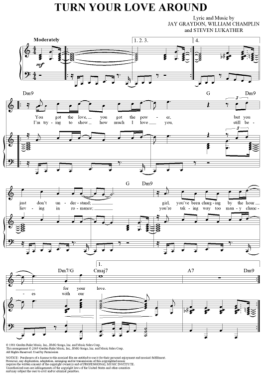 Digital Sheet Music for Turn Your Love Around by George Benson, Steve Lukather, Jay Graydon, Bill Champlin scored for Piano/Vocal/Chords; id:315282