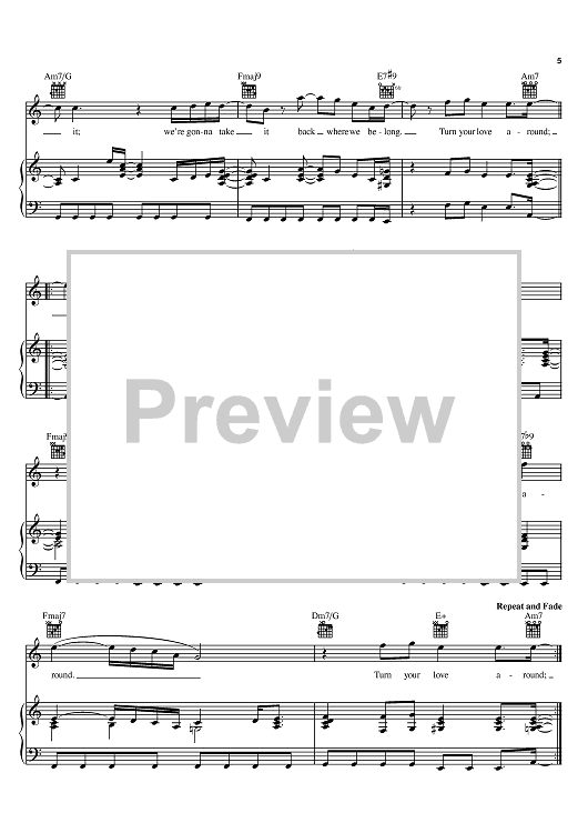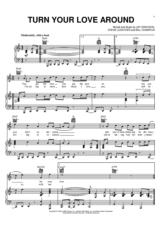 Digital Sheet Music for Turn Your Love Around by George Benson, Steve Lukather, Jay Graydon, Bill Champlin scored for Piano/Vocal/Chords; id:397624