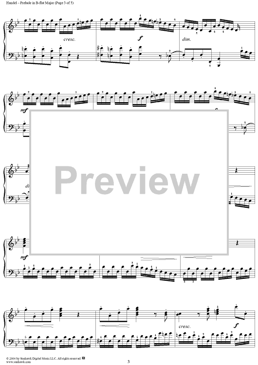Digital Sheet Music for 3 Lecons: No. 1, Prelude in B-flat Major by George Frideric Handel scored for Piano Solo; id:295300