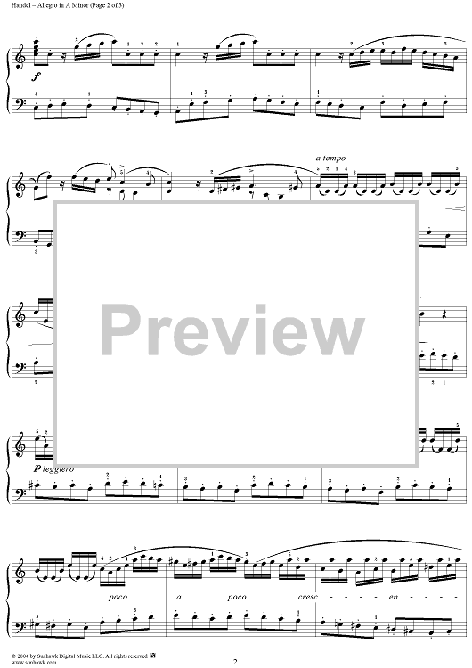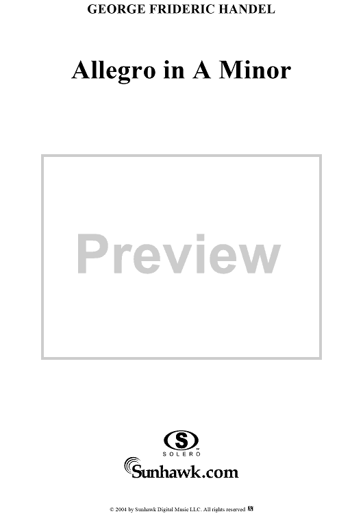 Digital Sheet Music for 7 Pieces: No. 3, Allegro in A Minor by George Frideric Handel scored for Piano Solo; id:295306