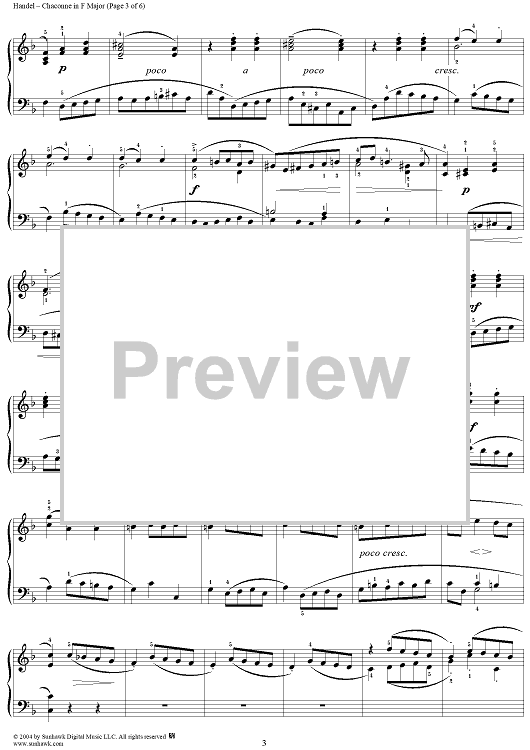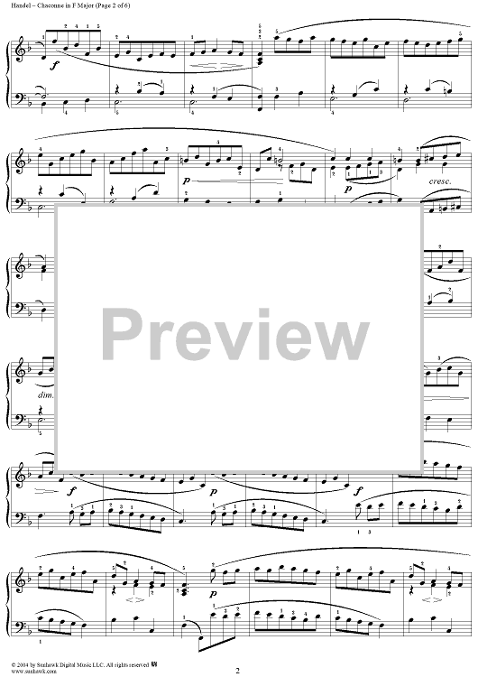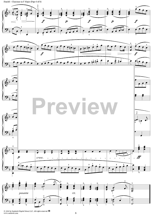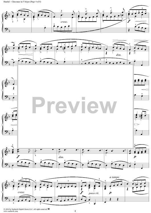 Digital Sheet Music for 7 Pieces: No. 5, Chaconne in F Major by George Frideric Handel scored for Piano Solo; id:295307