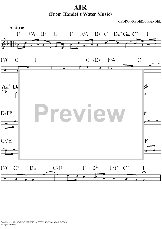 Digital Sheet Music for Air (from "The Water Music") by George Frideric Handel scored for Lead Sheet; id:267122