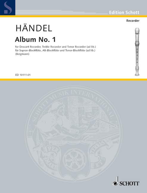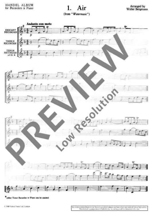Digital Sheet Music for Album No. 1 - Performing Score by George Frideric Handel scored for 2-3 Recorders (sa/t); Piano Ad Libitum; id:474100