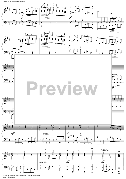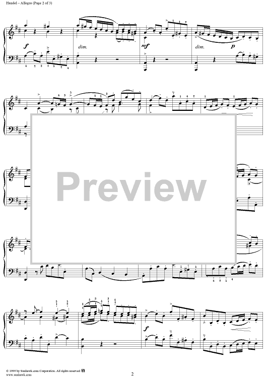 Digital Sheet Music for Allegro by George Frideric Handel scored for Piano Solo; id:267452