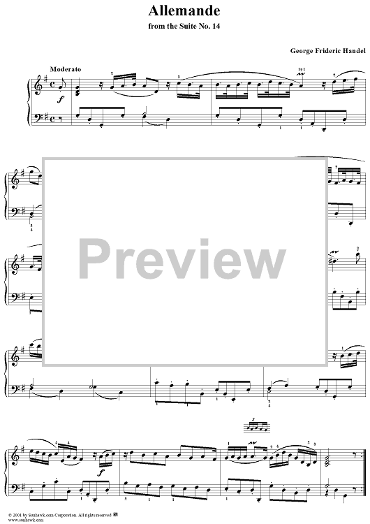 Digital Sheet Music for Allemande, from Suite No. 14 by George Frideric Handel scored for Piano Solo; id:257912