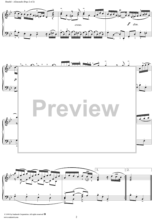 "Allemande" Sheet Music by George Frideric Handel