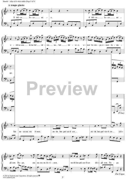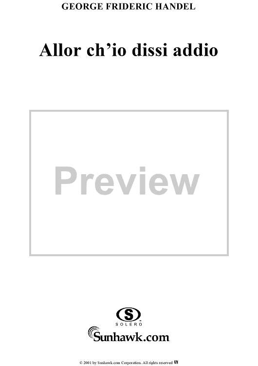 "Allor ch'io dissi addio (HWV80)" Sheet Music by George Frideric Handel