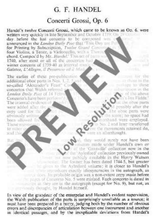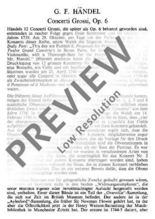 "Concerto grosso Bb Major - Full Score" Sheet Music by George Frideric Handel