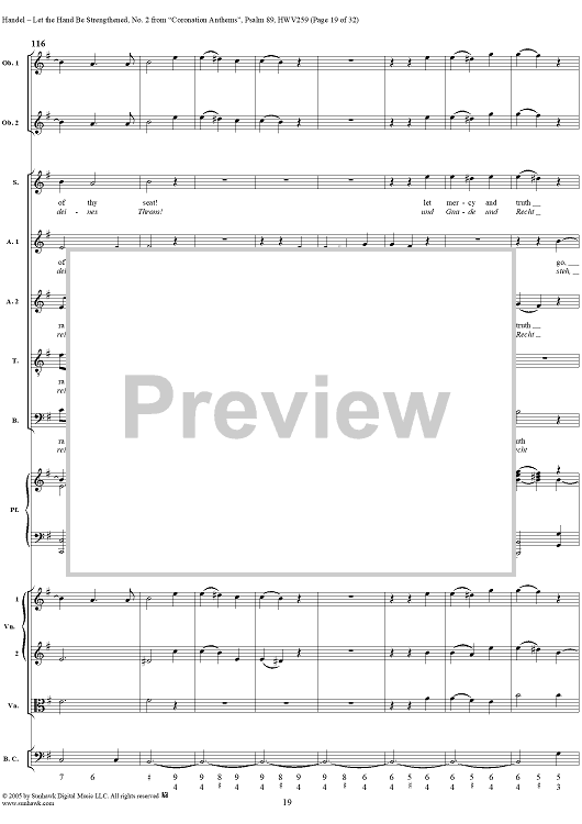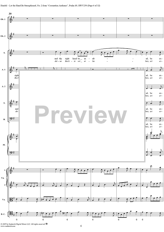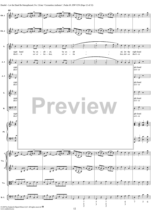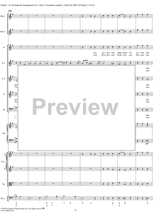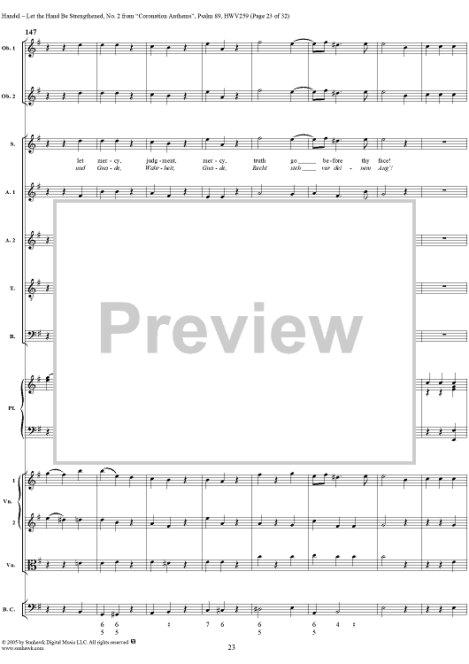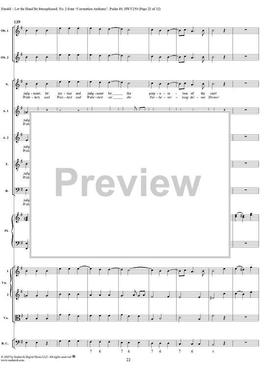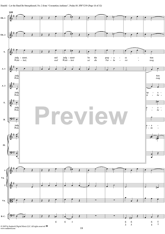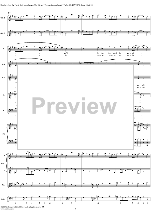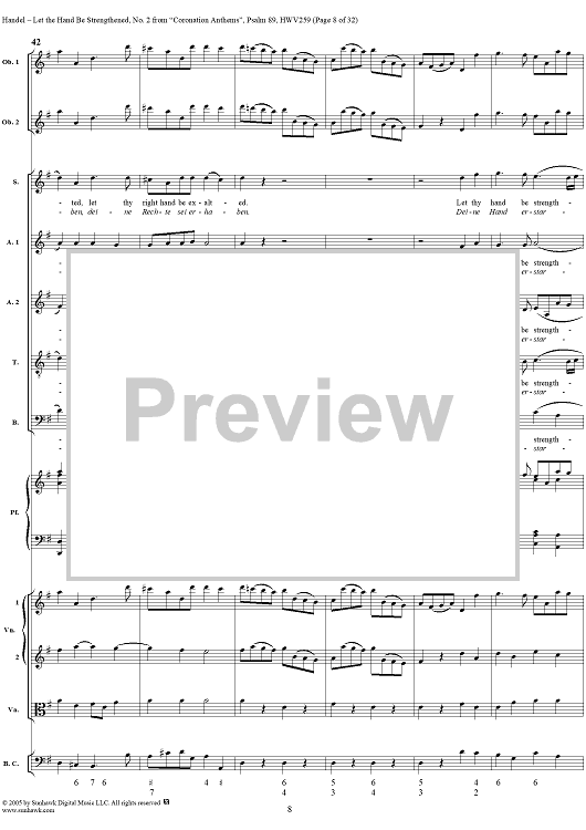 Digital Sheet Music for Coronation Anthems, No. 2: "Let the Hand Be Strengthened" (Psalm 89), HWV259 by George Frideric Handel scored for Four-part Mixed Chorus; id:306825