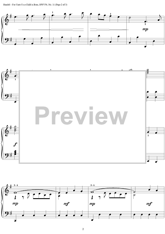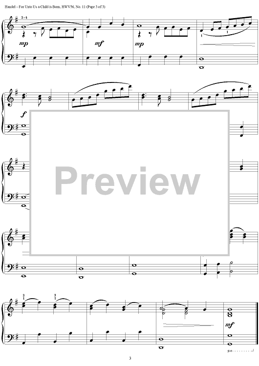 Digital Sheet Music for For Unto Us a Child is Born (Messiah) by George Frideric Handel, Richard Bradley scored for Piano Solo; id:266890