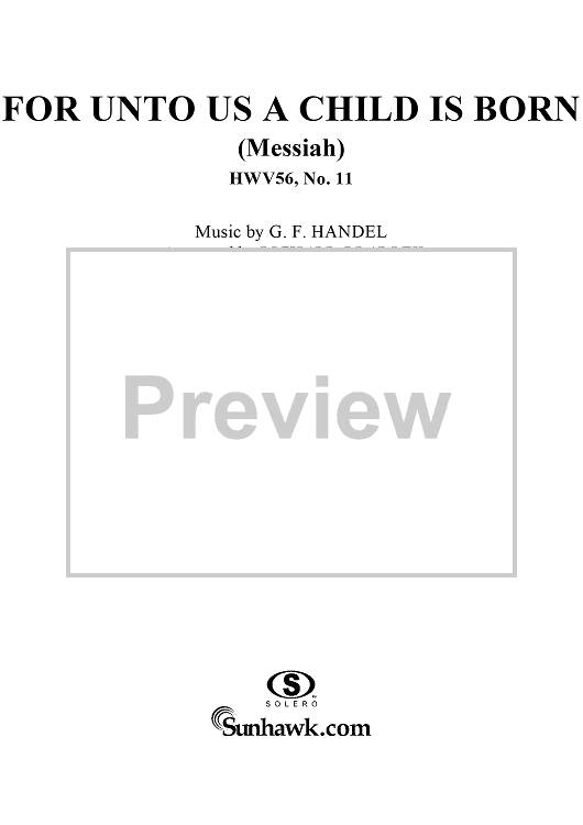 "For Unto Us a Child is Born (Messiah)" Sheet Music by George Frideric Handel