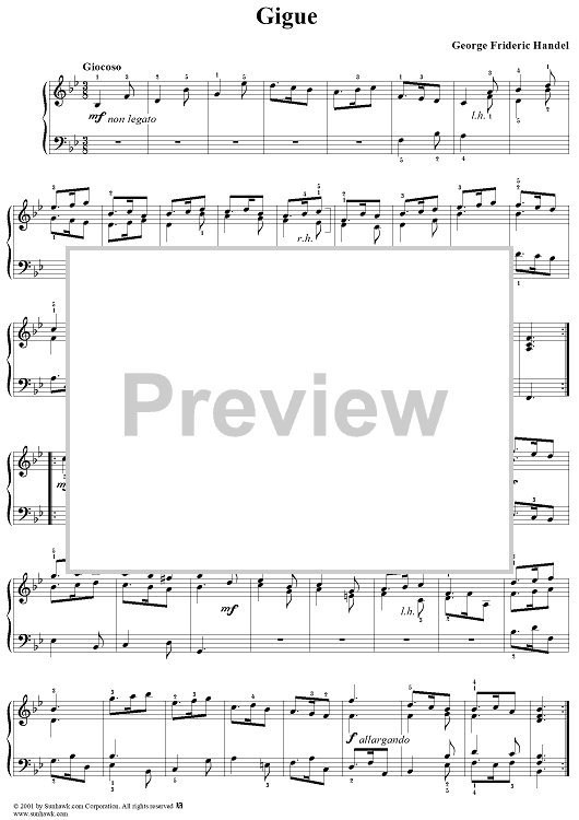 Digital Sheet Music for Gigue by George Frideric Handel scored for Piano Solo; id:262387