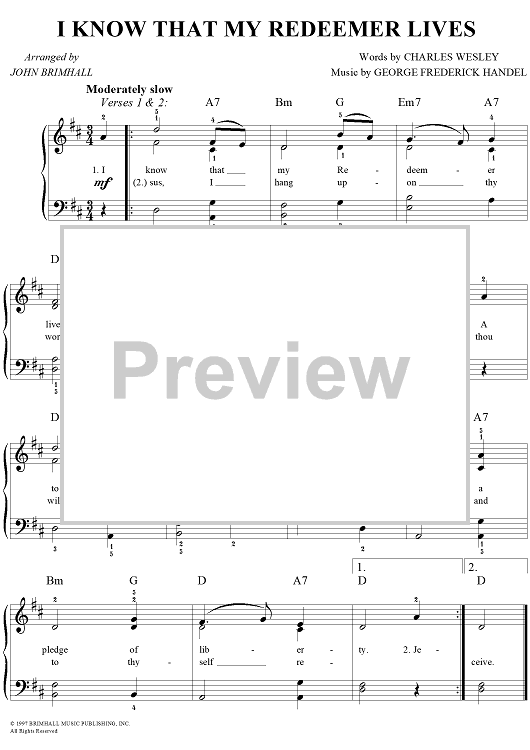 Digital Sheet Music for I Know That My Redeemer Lives by George Frideric Handel, Charles Wesley, John Brimhall scored for Easy Piano/Vocal; id:267389