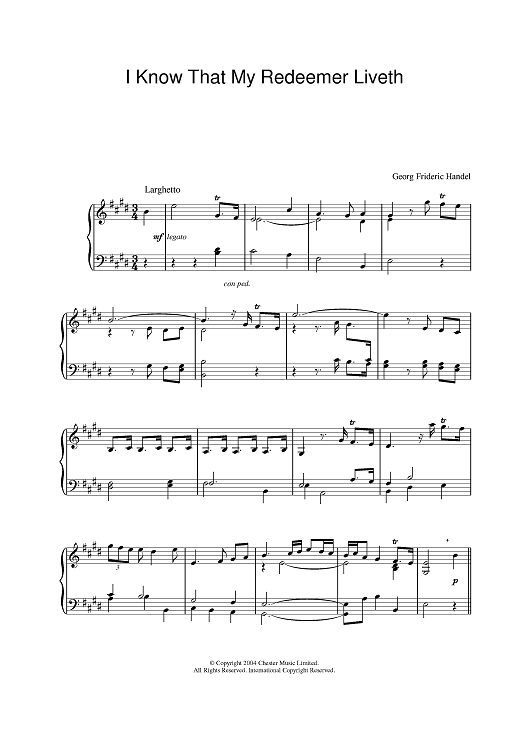 Digital Sheet Music for I Know That My Redeemer Liveth by George Frideric Handel scored for Piano; id:375865