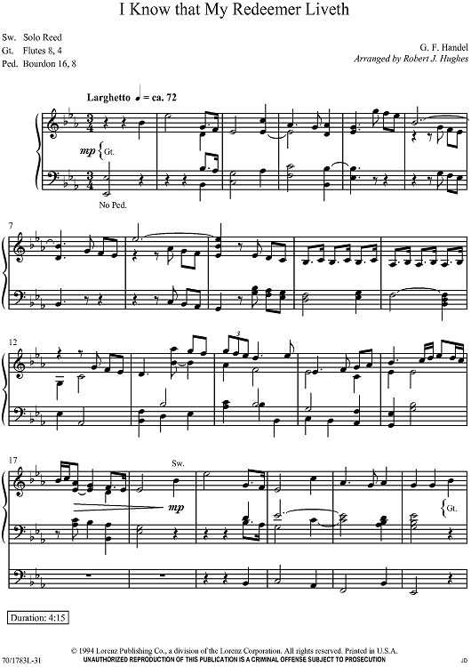 "I Know that My Redeemer Liveth" Sheet Music by George Frideric Handel