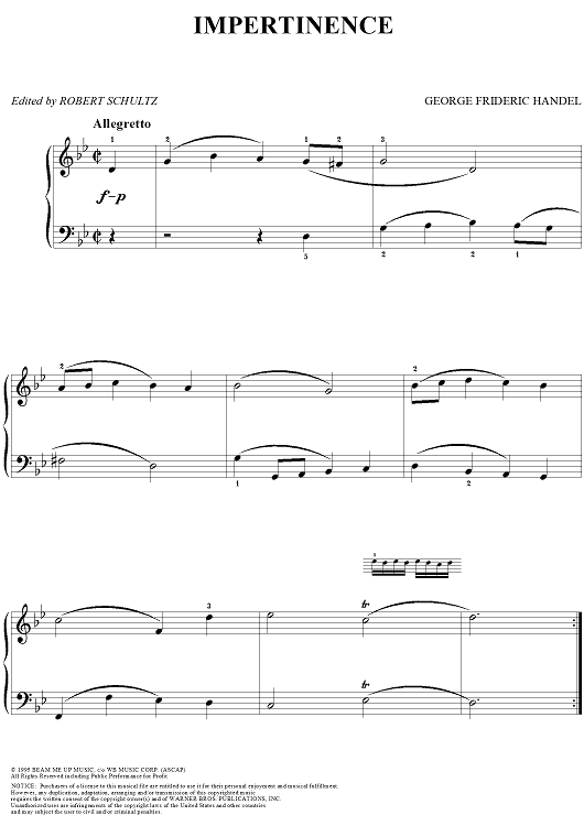 Digital Sheet Music for Impertinence by George Frideric Handel scored for Easy Piano; id:284677