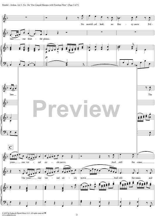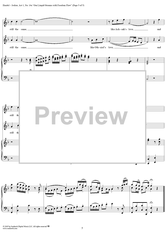 Digital Sheet Music for Joshua, Act 1, No. 14a "Our limpid streams with freedom flow" by George Frideric Handel scored for Vocal Score; id:306681