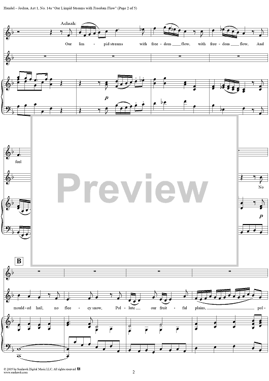 "Joshua, Act 1, No. 14a "Our limpid streams with freedom flow"" Sheet Music by George Frideric Handel