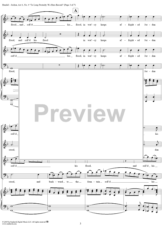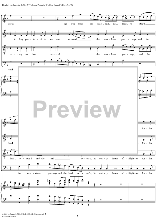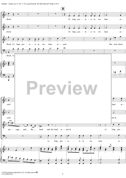 Digital Sheet Music for Joshua, Act 1, No. 4 "To long posterity we here record" by George Frideric Handel scored for Vocal Score; id:306673