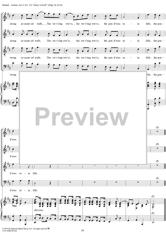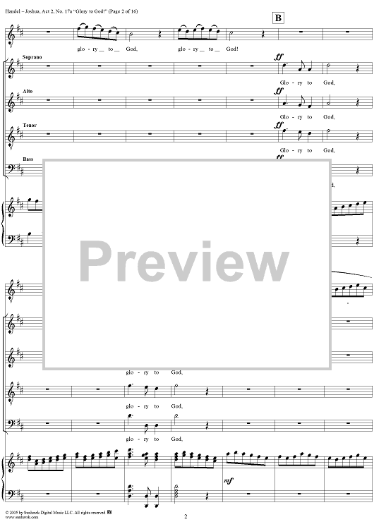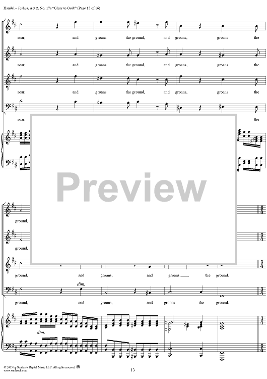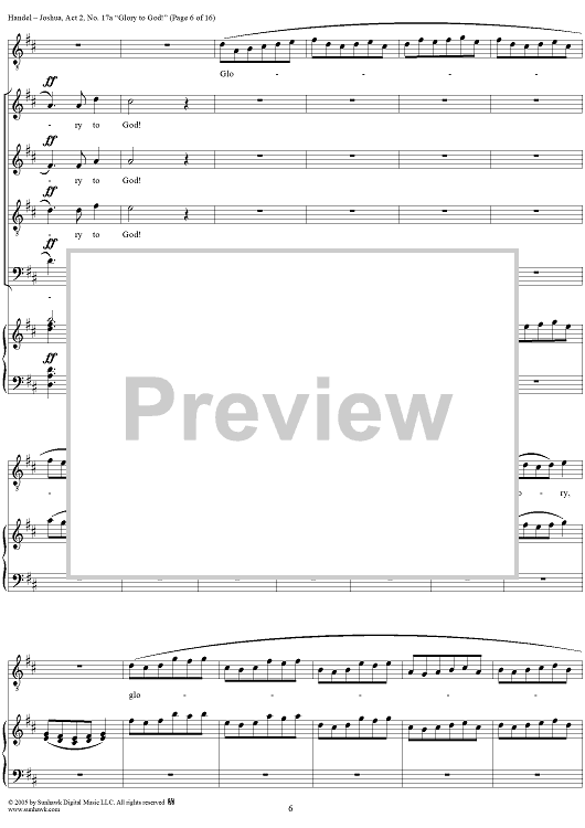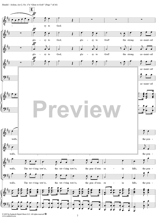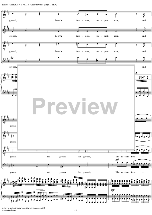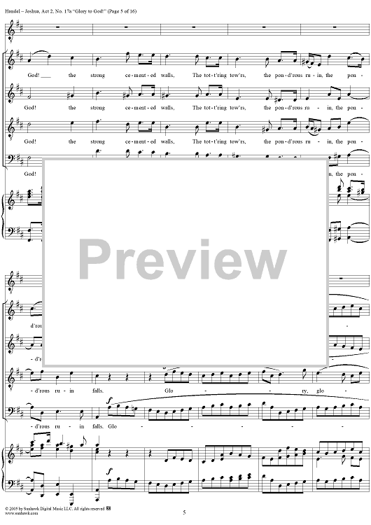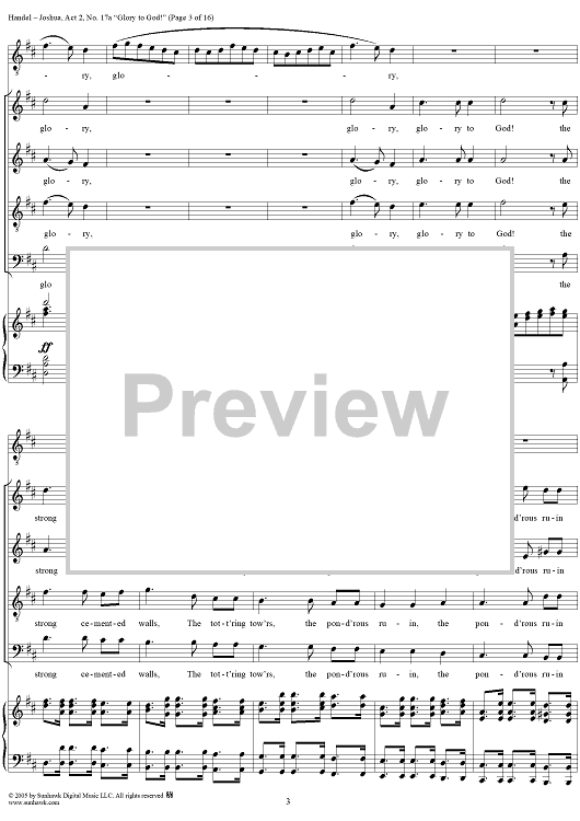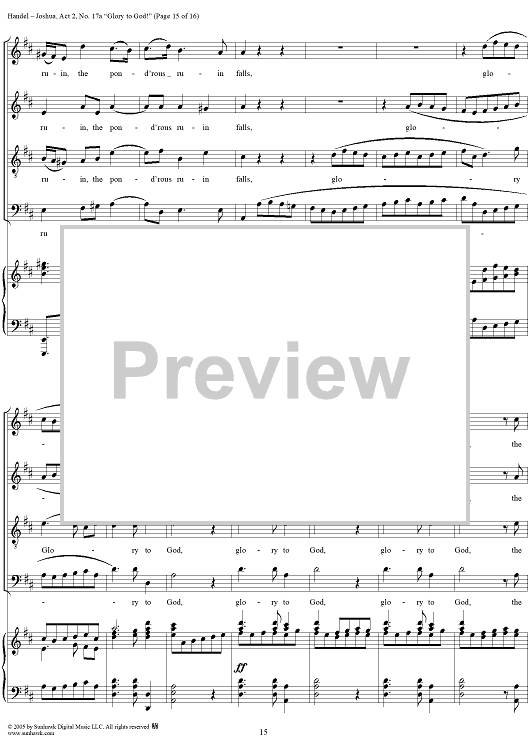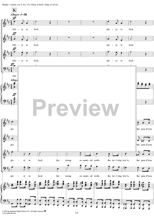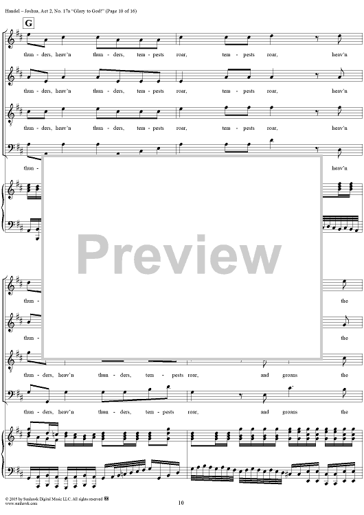 Digital Sheet Music for Joshua, Act 2, No. 17a "Glory to God!" by George Frideric Handel scored for Vocal Score; id:306728