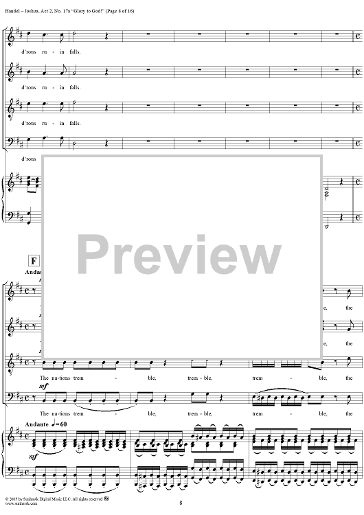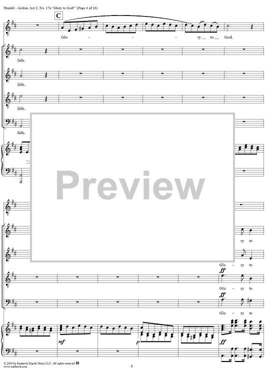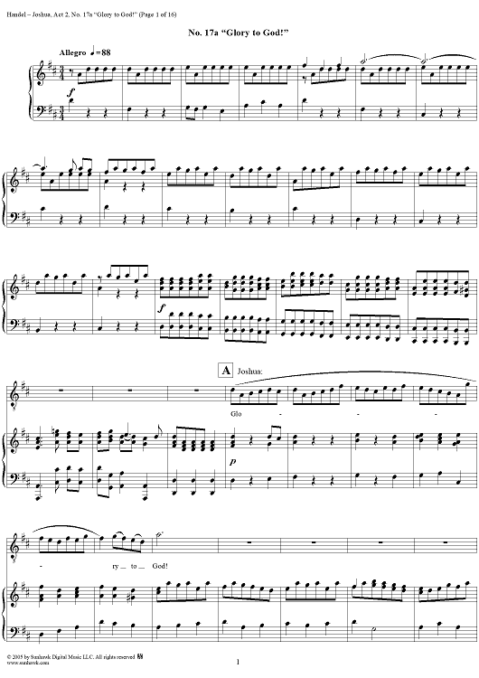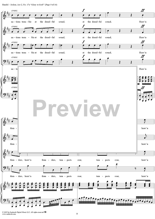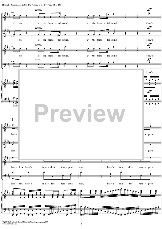 "Joshua, Act 2, No. 17a "Glory to God!"" Sheet Music by George Frideric Handel
