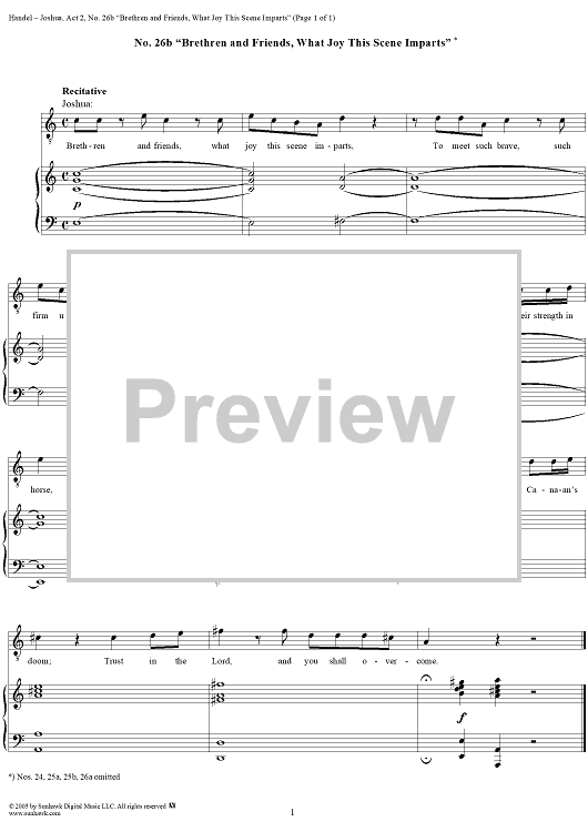 Digital Sheet Music for Joshua, Act 2, No. 26b: "Brethren and friends, what joy this scene imparts" by George Frideric Handel scored for Vocal Score; id:306734