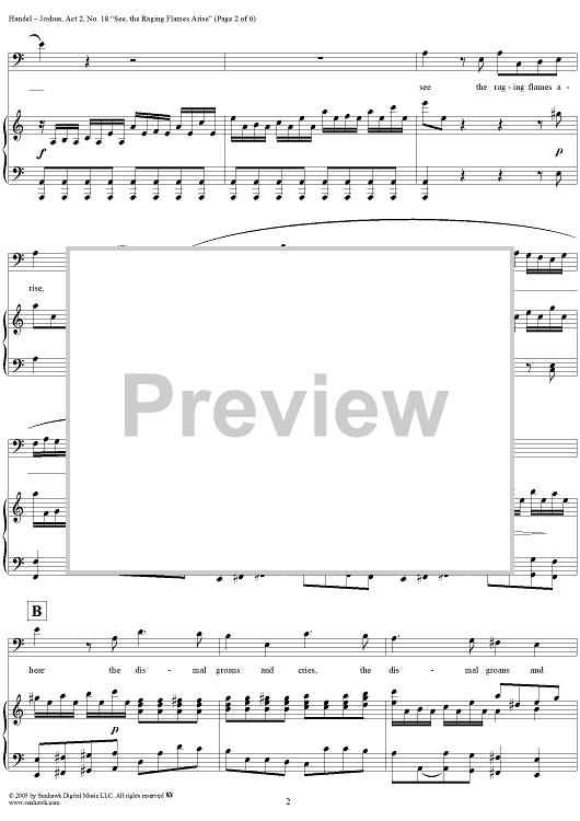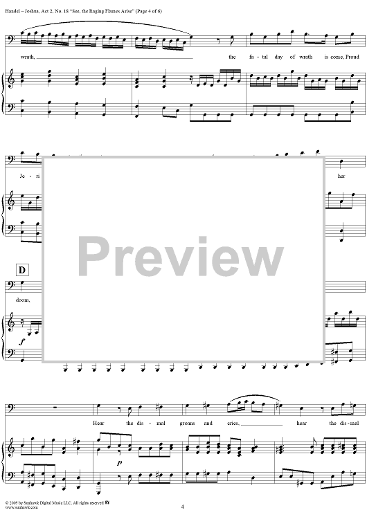 Digital Sheet Music for Joshua, Act 2, Nos. 18 "See, the raging flames arise" by George Frideric Handel scored for Vocal Score; id:306729