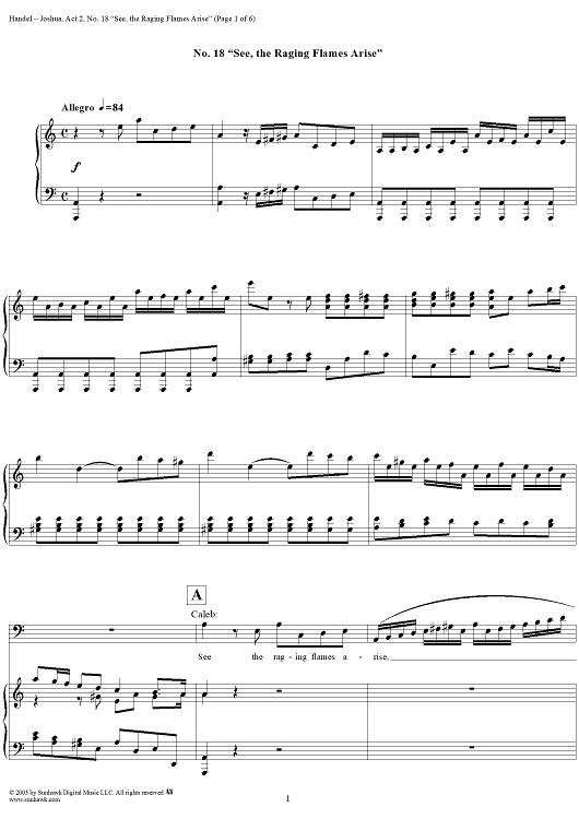 "Joshua, Act 2, Nos. 18 "See, the raging flames arise"" Sheet Music by George Frideric Handel