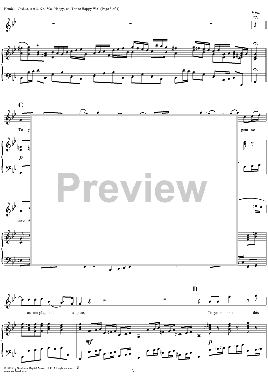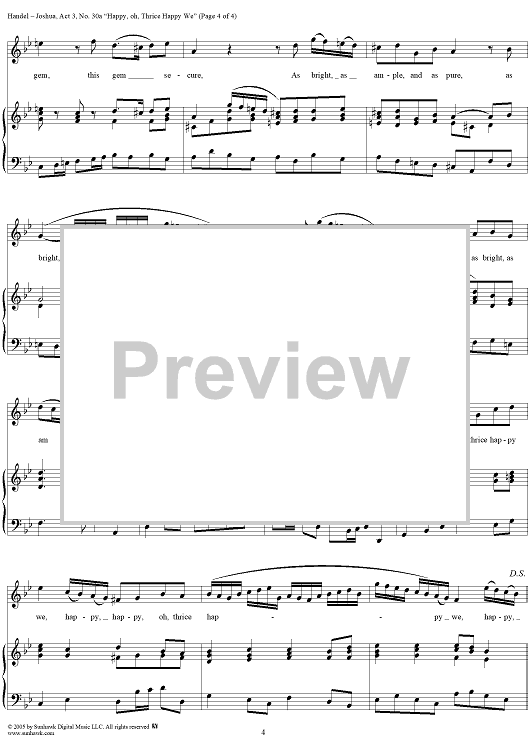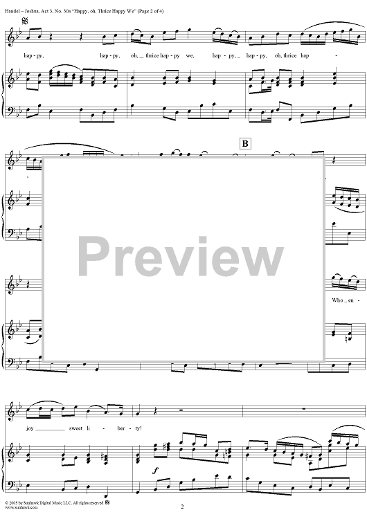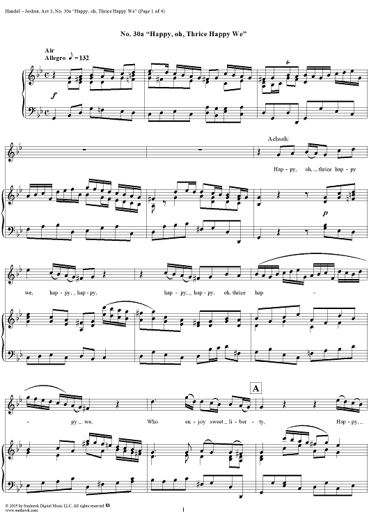 "Joshua, Act 3, No. 30a: "Happy, oh, thrice happy we"" Sheet Music by George Frideric Handel