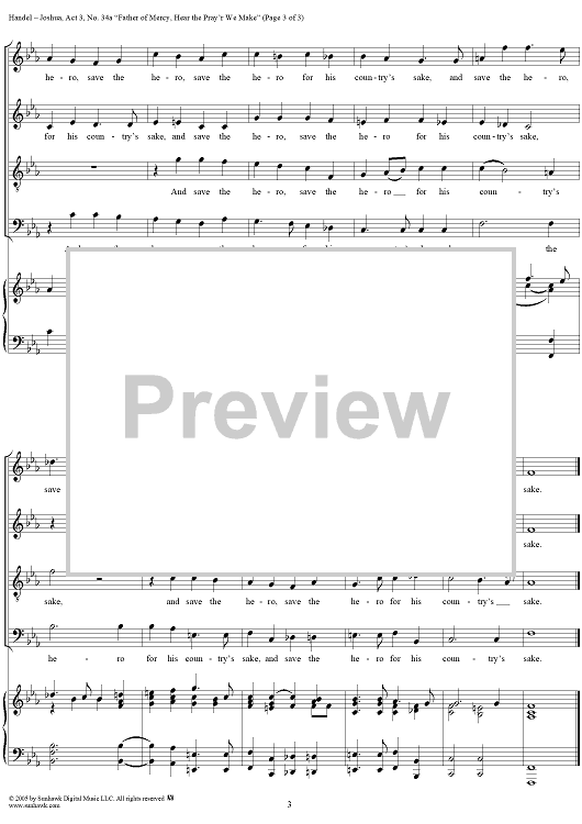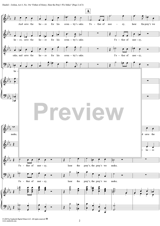 Digital Sheet Music for Joshua, Act 3, No. 34a: "Father of mercy, hear the pray'r we make" by George Frideric Handel scored for Vocal Score; id:306751