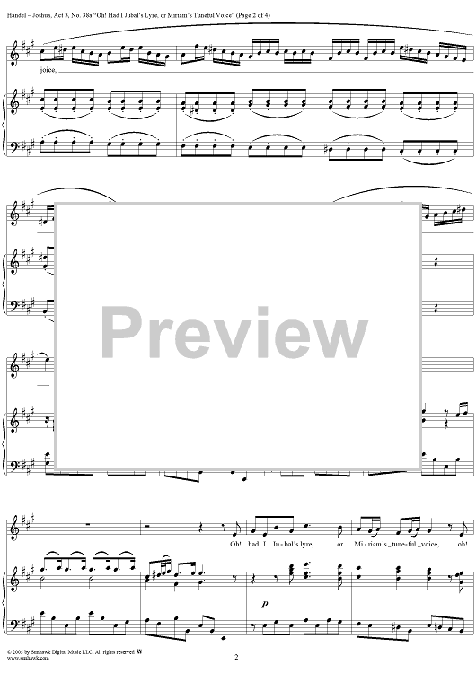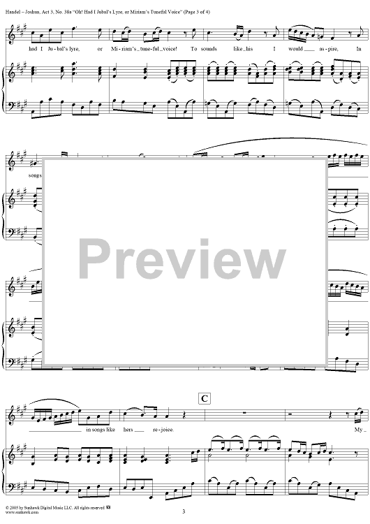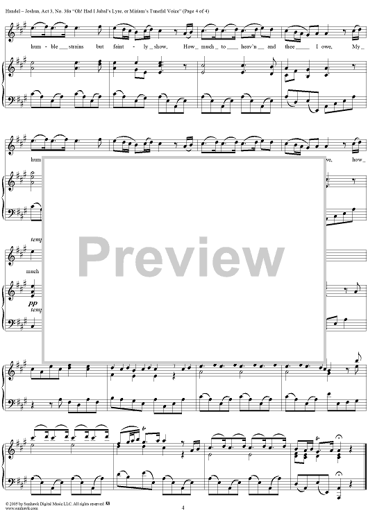 Digital Sheet Music for Joshua, Act 3, Nos. 38a: "Oh! had I Jubal's lyre, or Miriam's tuneful voice" by George Frideric Handel scored for Vocal Score; id:306753