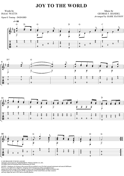 Digital Sheet Music for Joy to the World by George Frideric Handel, Isaac Watts, Mark Hanson scored for Guitar Tab; id:266897