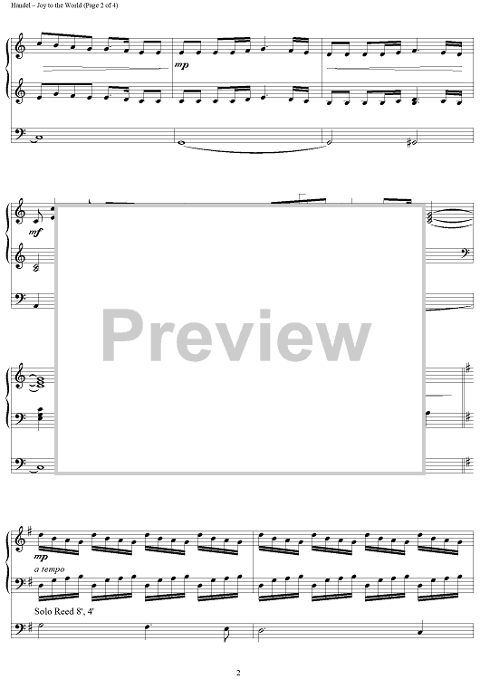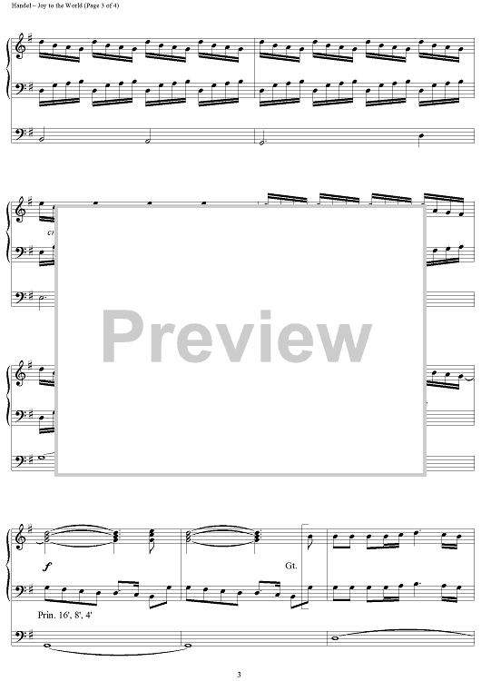 Digital Sheet Music for Joy to the World by George Frideric Handel, Ruth Elaine Schram scored for Organ Solo; id:291184