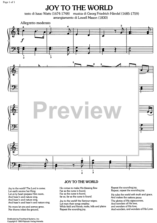 "Joy to the world" Sheet Music by George Frideric Handel