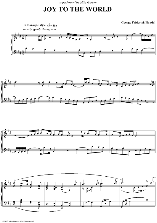 Digital Sheet Music for Joy To The World by George Frideric Handel, Mike Garson scored for Piano Solo; id:366308