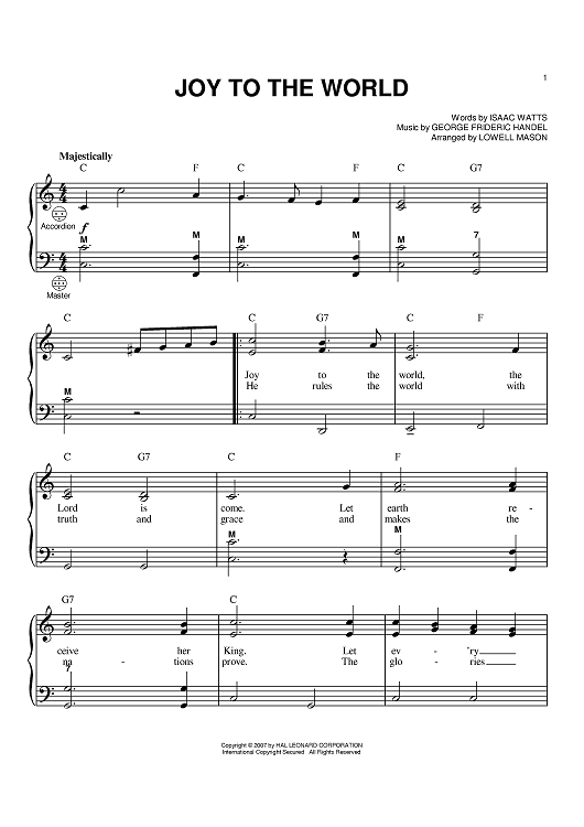 Digital Sheet Music for Joy To The World by George Frideric Handel, Isaac Watts, Lowell Mason scored for Accordion; id:397938