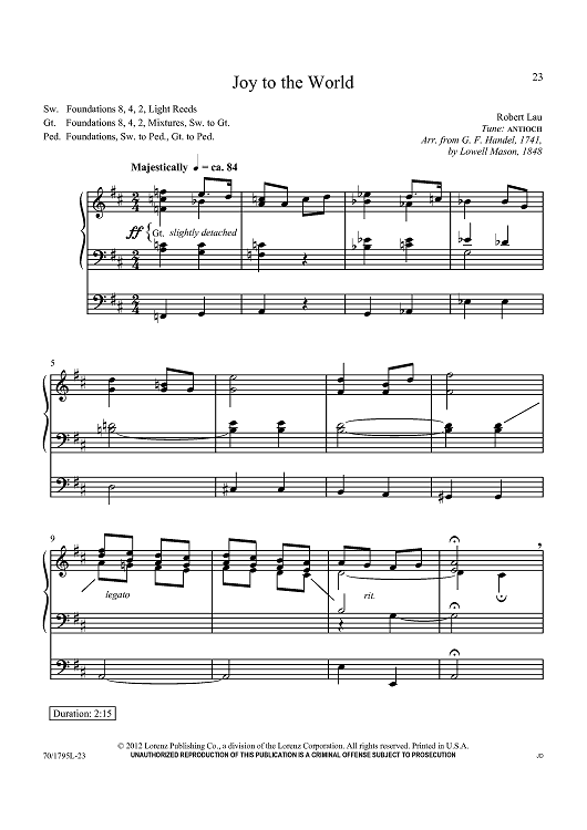 Digital Sheet Music for Joy to the World by George Frideric Handel, Lowell Mason, Robert Lau scored for Organ Solo; id:437752