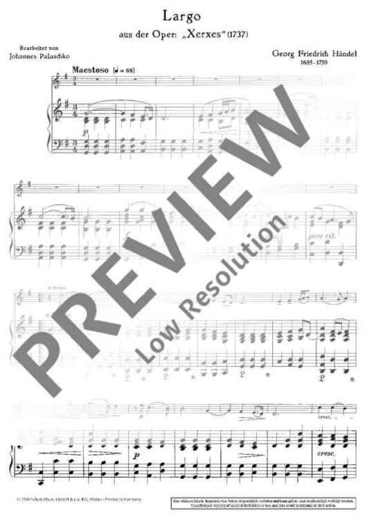 Digital Sheet Music for Largo G major by George Frideric Handel, Johannes Palaschko scored for Violin And Piano; id:474829