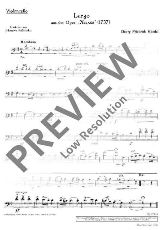 Digital Sheet Music for Largo by George Frideric Handel, Johannes Palaschko scored for Cello And Piano; id:474911
