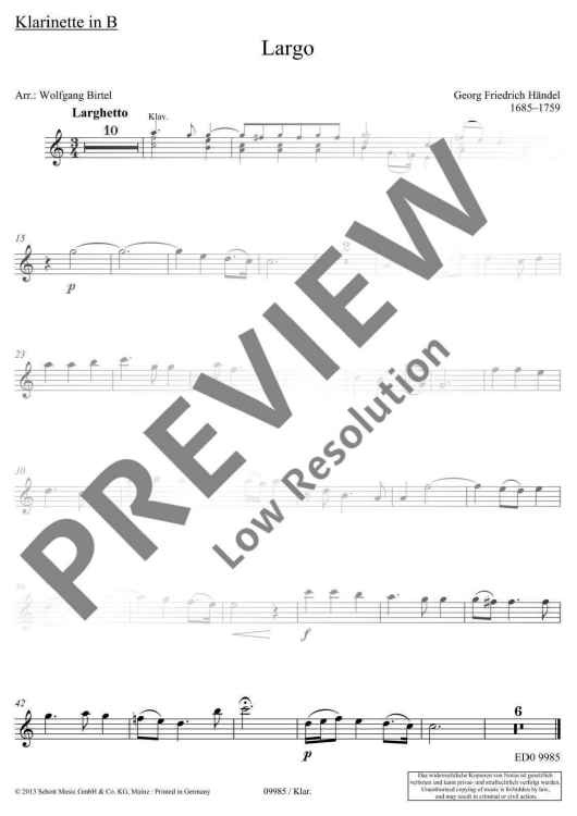 Digital Sheet Music for Largo by George Frideric Handel, Wolfgang Birtel scored for Clarinet In Bb And Piano; id:485511