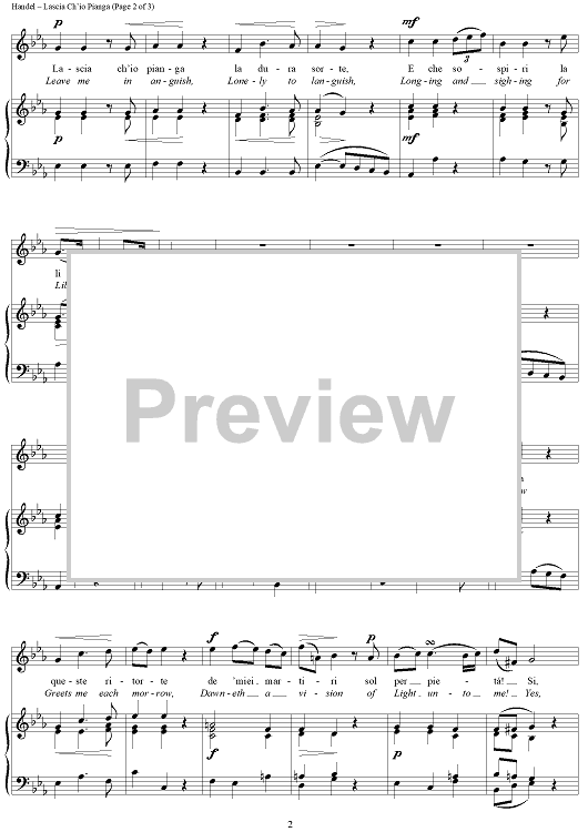 Digital Sheet Music for Lascia Ch'io Pianga, from "Rinaldo" (HWV7) by George Frideric Handel scored for Voice/Piano; id:267409