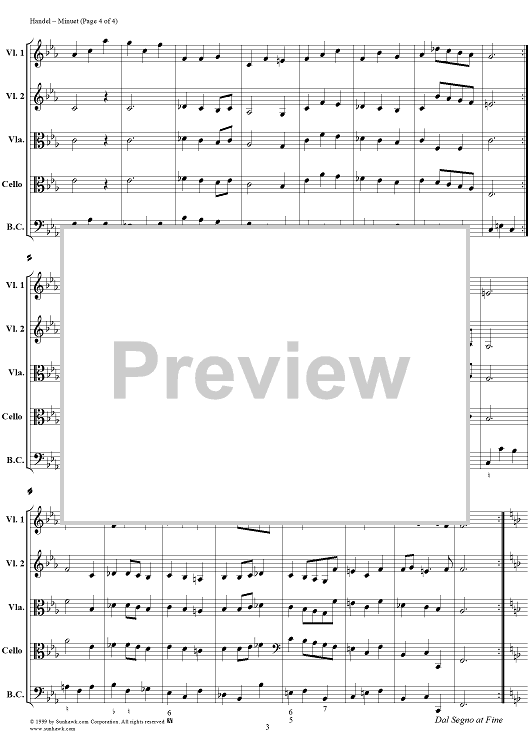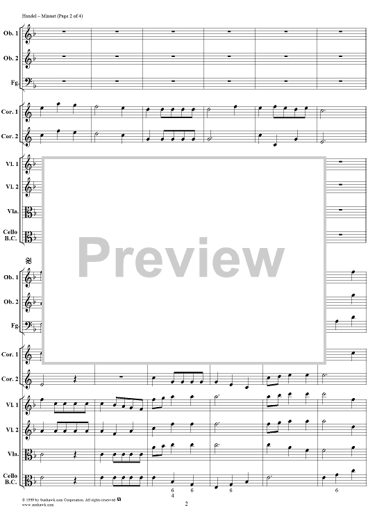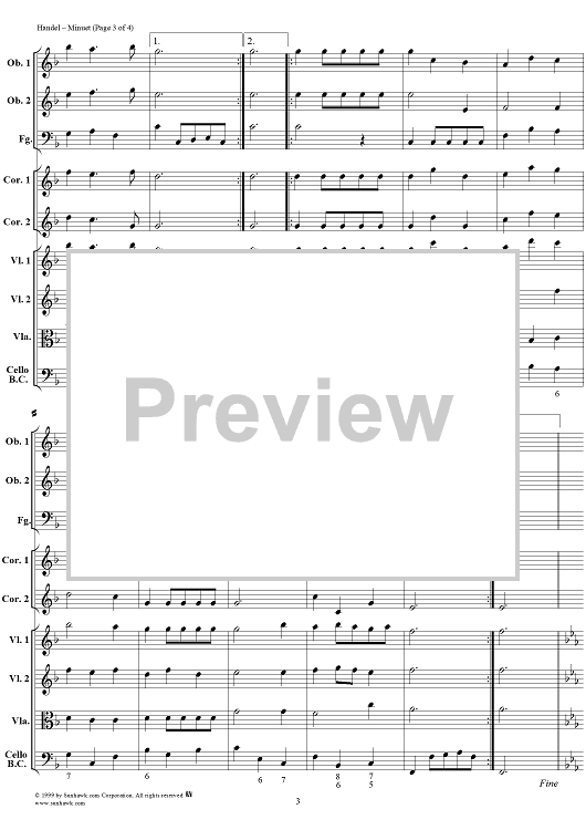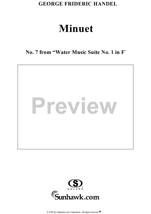 Digital Sheet Music for Minuet - No. 7 from "Water Music Suite No. 1 in F" - HWV348 - Score by George Frideric Handel scored for Assorted Instruments; id:266491