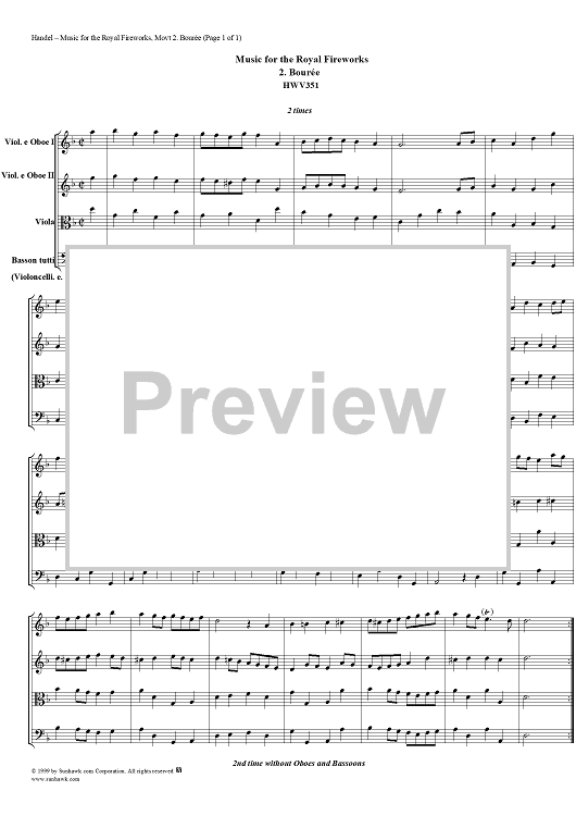 "Music for the Royal Fireworks, No. 2: Bourree - Score" Sheet Music by George Frideric Handel