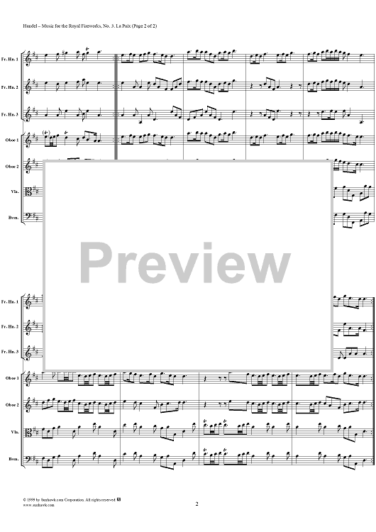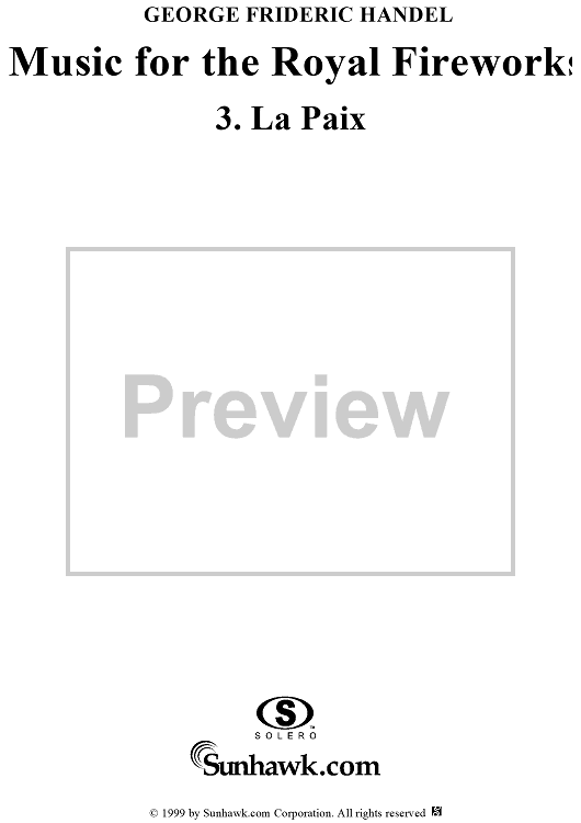 "Music for the Royal Fireworks, No. 3: La Paix - Score" Sheet Music by George Frideric Handel